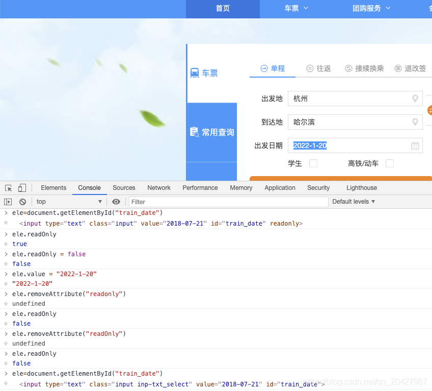 js = "var ele=document.getElementById('train_date');ele.readOnly = false;ele.value = '2022-1-20';"