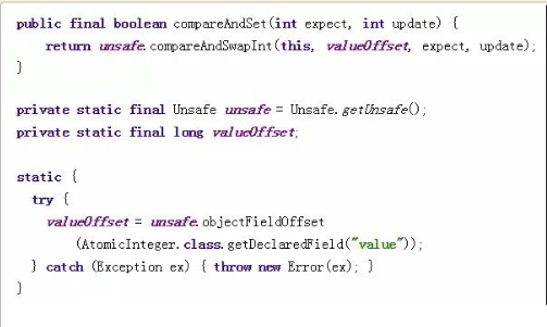 ①. CompareAndSet方法的实现很简单,只有一行代码,这里涉及到两个重要的对象,一个是unsafe,一个是valueOffset。