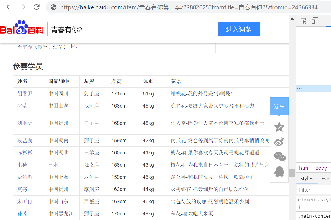 url = "https://baike.baidu.com/item/青春有你第二季/23802025?fromtitle=青春有你2&fromid=24266334"