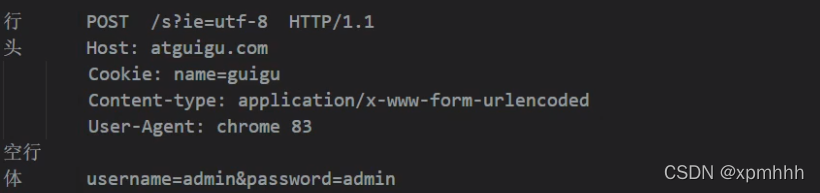 请求行:请求类型 请求路径+查询字符串 协议版本