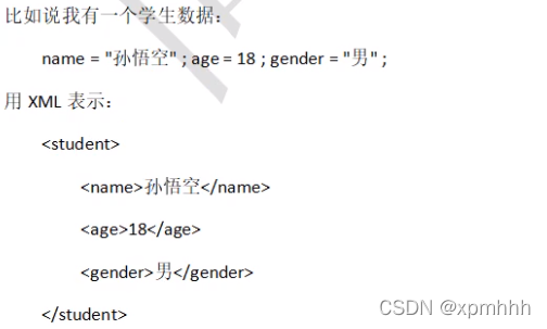 与HTML的区别:HTML中都是预定义的标签,而XML中没有预定义标签,全都是自定义标签,用来表示一些数据。