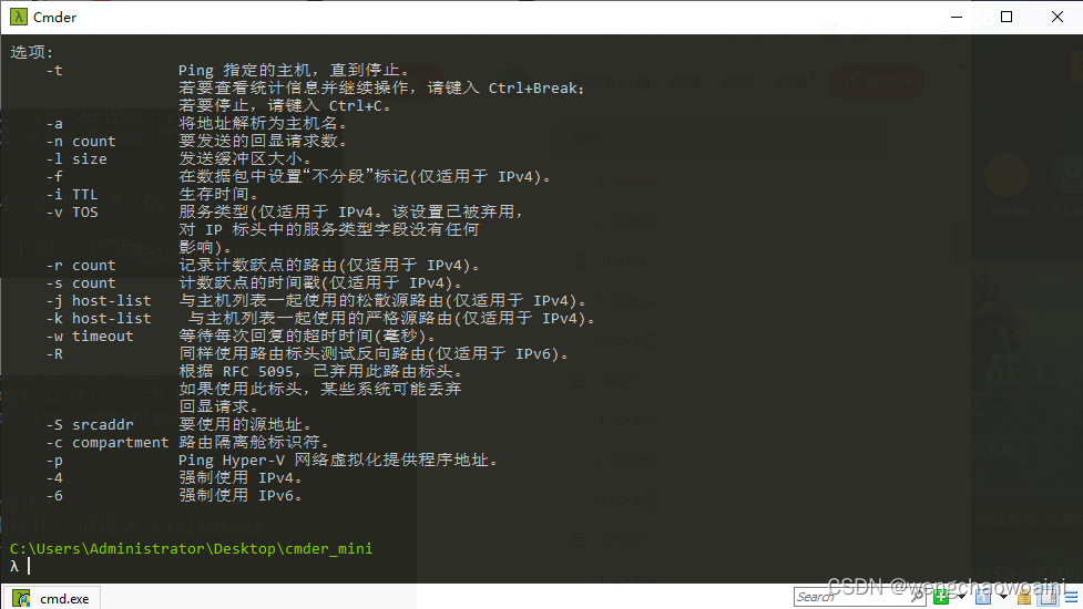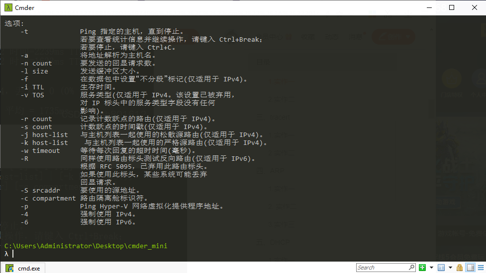 使用 ping/? 命令了解该命令的各种选项并实际使用。