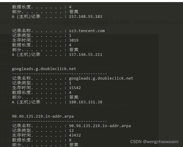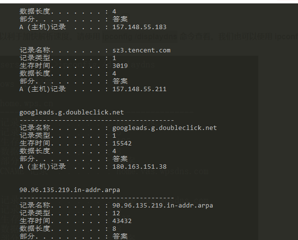 解析过的 DNS 记录将会被缓存,以利于加快解析速度。请使用 ipconfig /displaydns 命令查看。我们也可以使用 ipconfig /flushdns 命令来清除所有的 DNS 缓存。