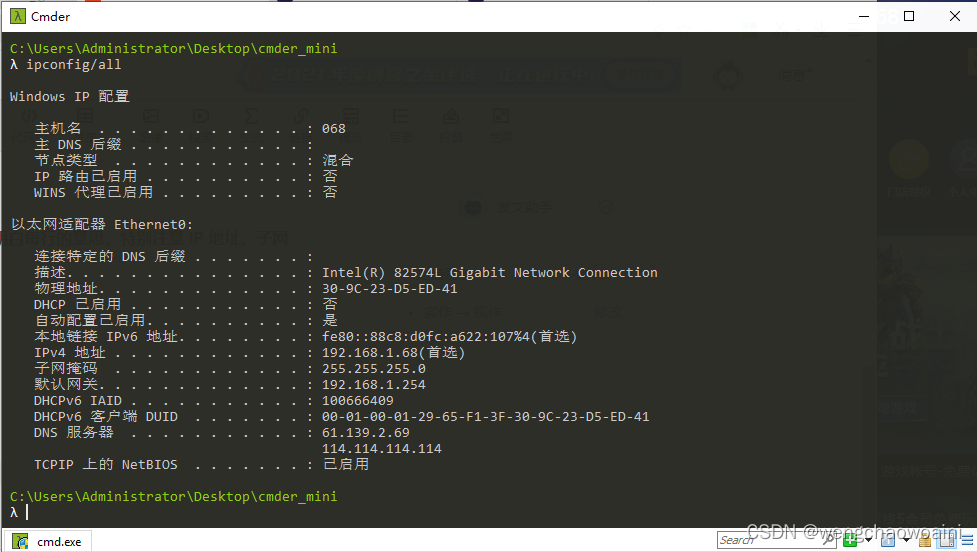 使用 ipconfig/all 查看旁边计算机的网络配置,看看有什么异同