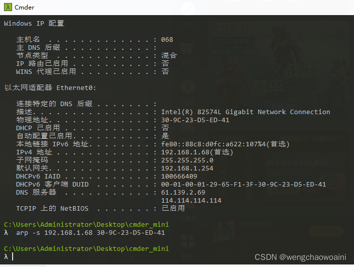 2.netsh -c “i i” add neighbors 【Idx】 【IP地址】【mac地址】修改指定IP的mac