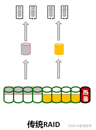 当RAID组中有坏盘,这个时候热备盘就可以去顶替RAID组中所坏掉的那块盘,加入到RAID组中,并进行数据重构