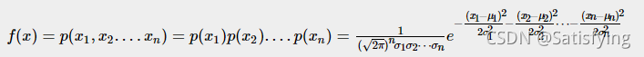 独立多元高斯分布基于各个维度特征之间是相互独立的,且都服从正态分布。由联合概率公式: