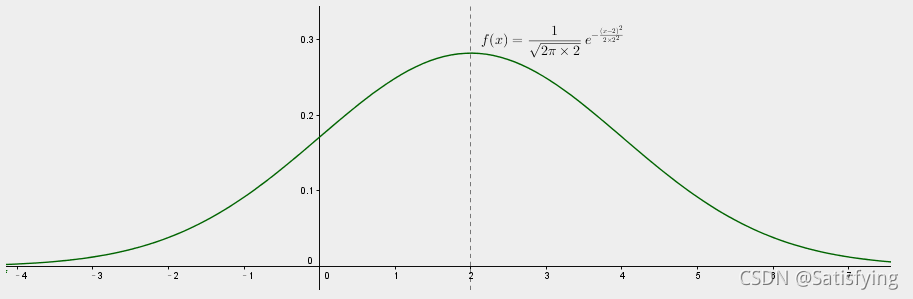 f(x) ~ N(mu, sigma^2),表示该分布均值为 mu,方差为 sigma^2。概率密度函数曲线的对称轴为 mu,sigma 代表曲线的高低胖瘦。sigma 越大,曲线越矮越胖;sigma 越小,曲线越高越瘦。
