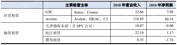 表 公司租赁业务主要经营主体及盈利数据(单位:亿元)