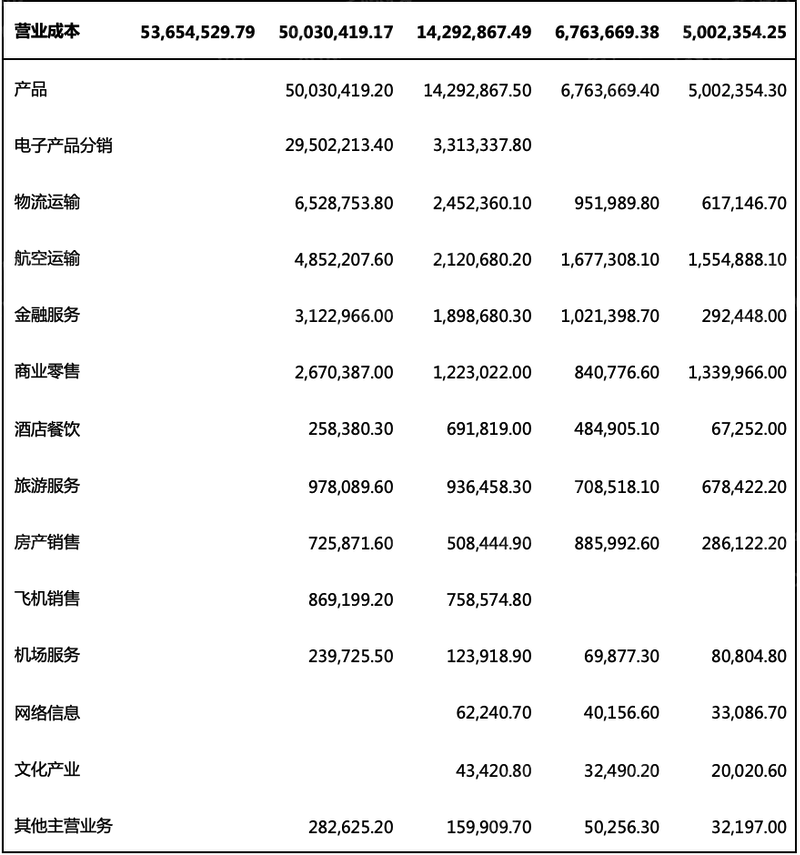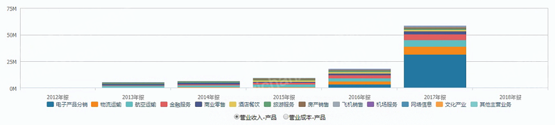 海航集团有限公司以航空运输主业为核心发展方向,还涉及机场服务、旅游服务、酒店餐饮、商品贸易及物流、金融服务、房地产业、电子产品分销多个业务板块。从收入构成看,该公司收入主要来源于核心业务;此外,公司还实现其他业务收入91.25亿元,主要来自网络信息等业务。2018年,公司营业收入增长主要由电子产品分销和房地产业务贡献。从毛利贡献看,2018年电子产品分销、金融服务及航空运输的毛利贡献程度较高,其次为商品贸易及物流、 酒店餐饮及房地产业务,旅游服务及机场服务的毛利贡献程度相对较低。