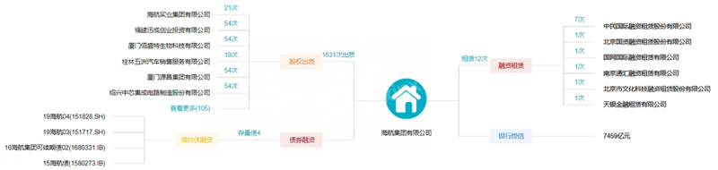 海航系主要通过海航资本集团有限公司(简称“海航资本”)经营金融业务,包括租赁、保险、互联网金融、证券、期货等业务。金融服务业务的发债主体主要包括海航资本、渤海租赁股份有限公司、中合中小企业融资担保股份有限公司、营口沿海银行股份有限公司。