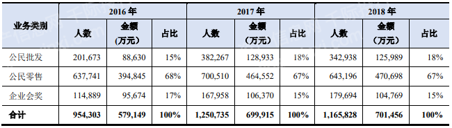 表 2016-2018年凯撒旅游接待旅游人数情况