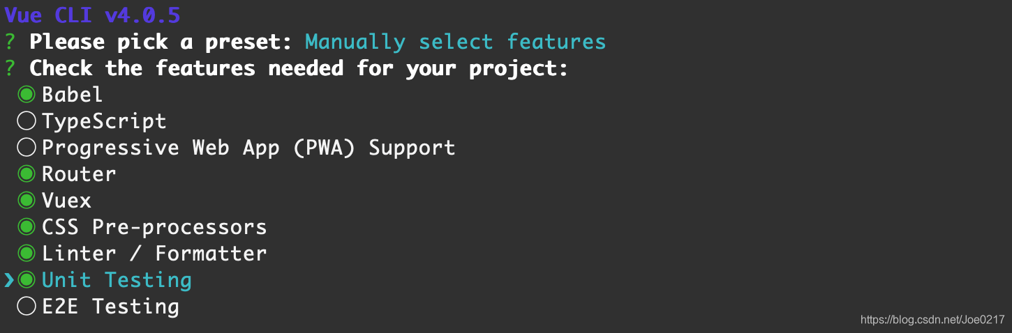 vue create test-project3、选择项目需要的特性