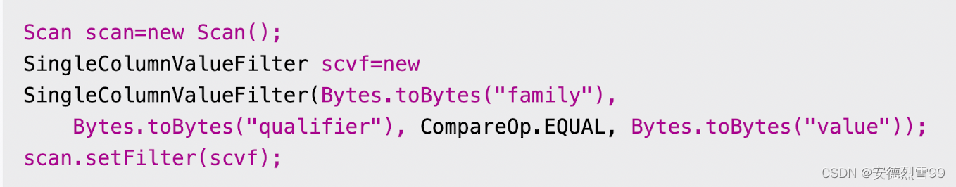 这个例子表示将列簇为family,列尾qualifier值为value的cell返回给用户。但是实际上,对那些不包含family:qualifier列的行,也会默认返回给用户。