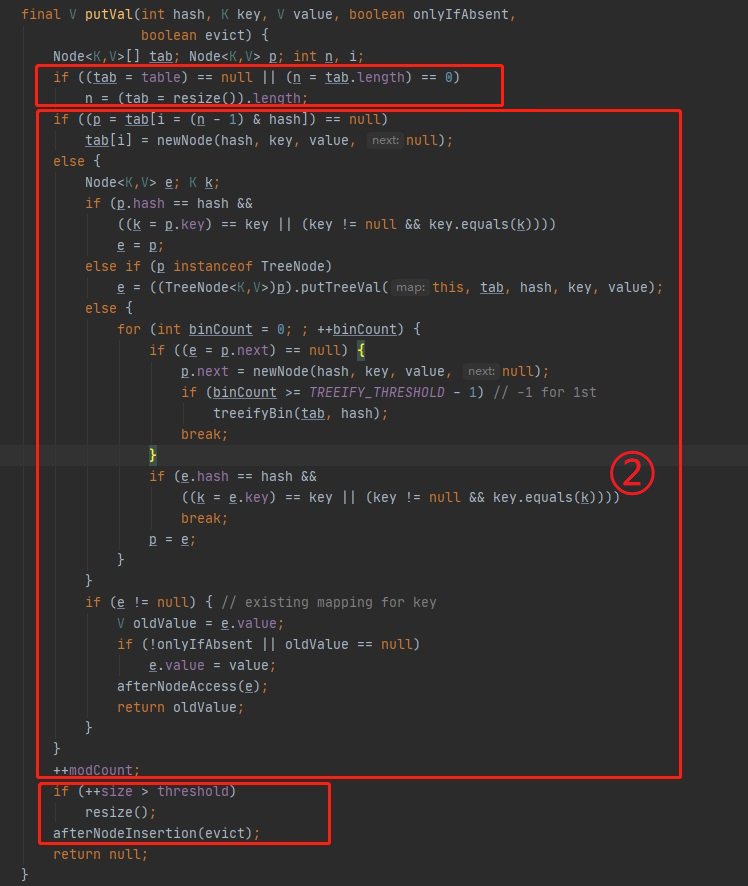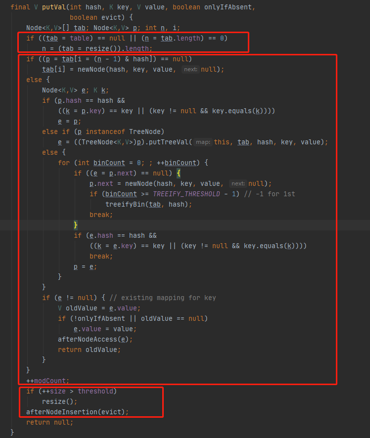 final V putVal(int hash, K key, V value, boolean onlyIfAbsent, boolean evict) {}
