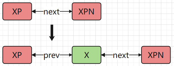 将新节点 x 插入到原来链表的 xp 和 xpn 之间