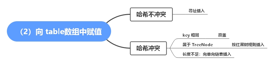 2> 向table数组中赋值,这⾥⾯分为哈希不冲突和哈希冲突两种情况。