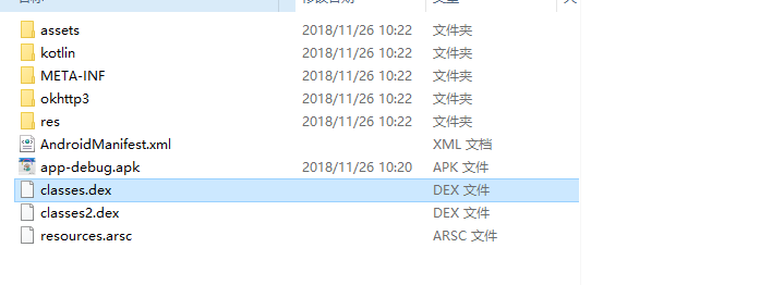 然后把要逆向的APK文件进行解压,获取classes.dex,这个文件就是存放Java代码的。