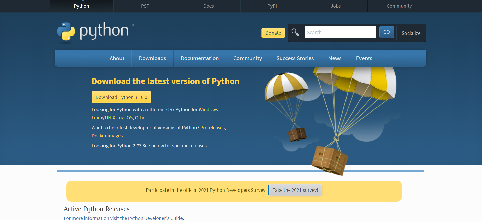 打开python官网 https://www.python.org/