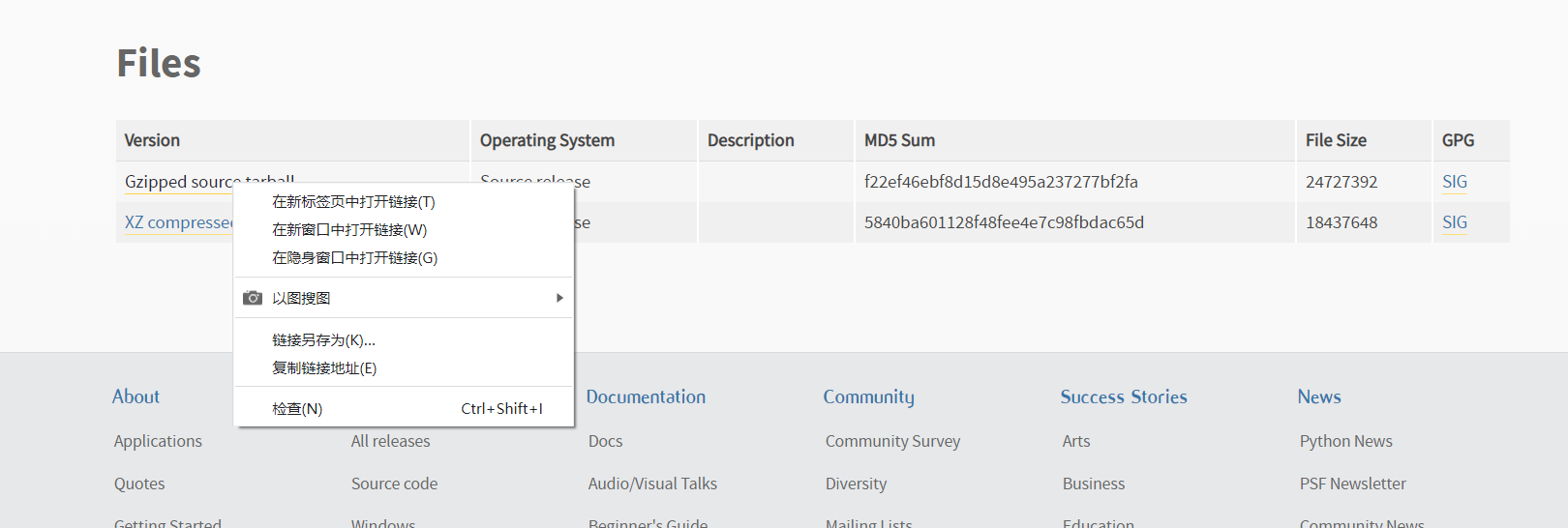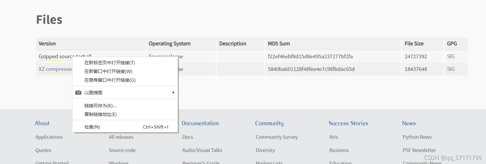 右击 Gzipped source tarball 点击复制链接地址