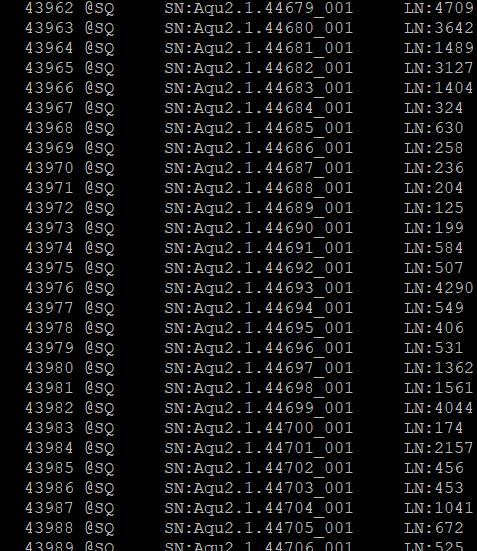 这一步可能会比较慢。查看bam文件用: samtools view -h larvae1.bam| less -SN