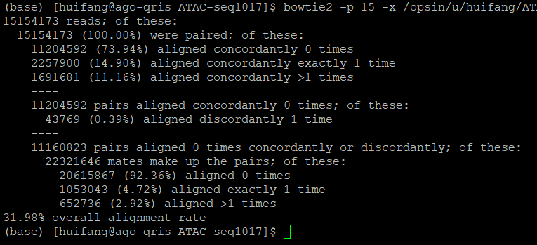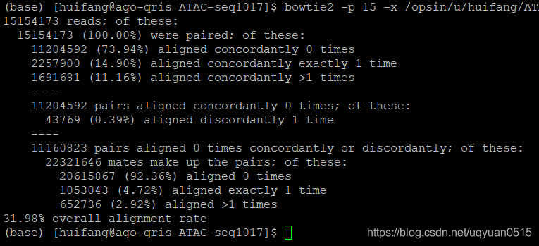 以上也可以直接从bowtie2到samtools view and samtools sort, 输出bam 文件,
