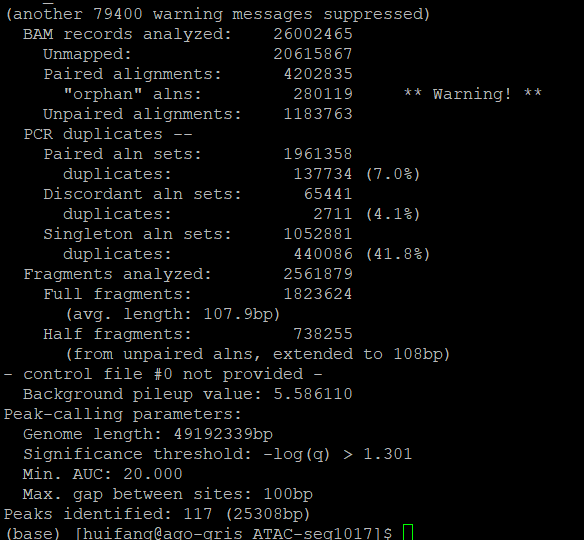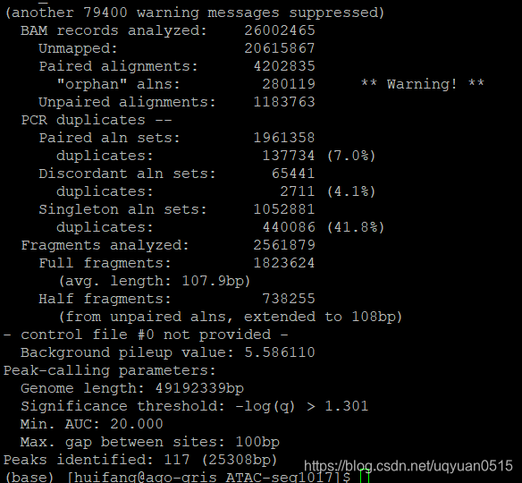 结果呢,这个跑了大概14个小时,得到了大概一万六千个peak. 以及excel表格,和peak.bed 文件,以及R脚本。通过运行得到的R脚本,可以得到peak Model 的图谱,然后也可以根据这个excel表格得到Peak分布的柱状图。