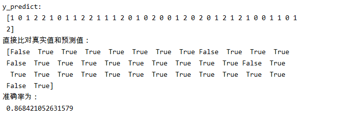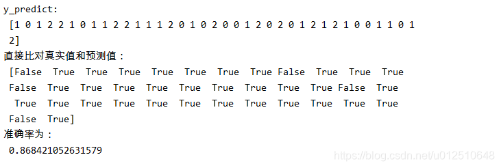 print("直接比对真实值和预测值:\n", y_test == y_predict)