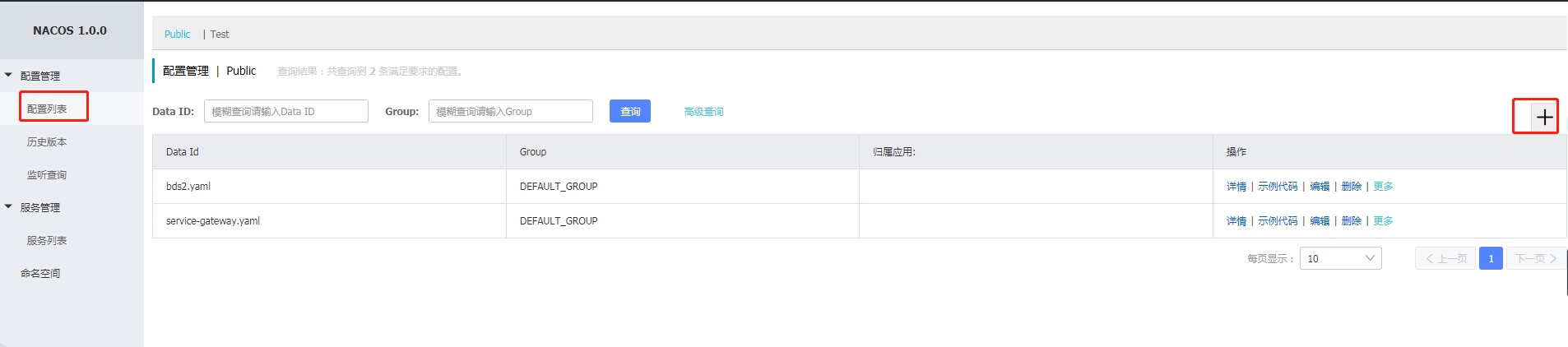 #spring.cloud.nacos.discovery.namespace=13c9e857-2f36-4de1-956f-890d322ed7aa3、nacos新增配置(以yaml格式为例), 新增的文件必须是以服务名为前缀.eg:项目的服务名为bds2,则新建的配置名称为bds2.yaml