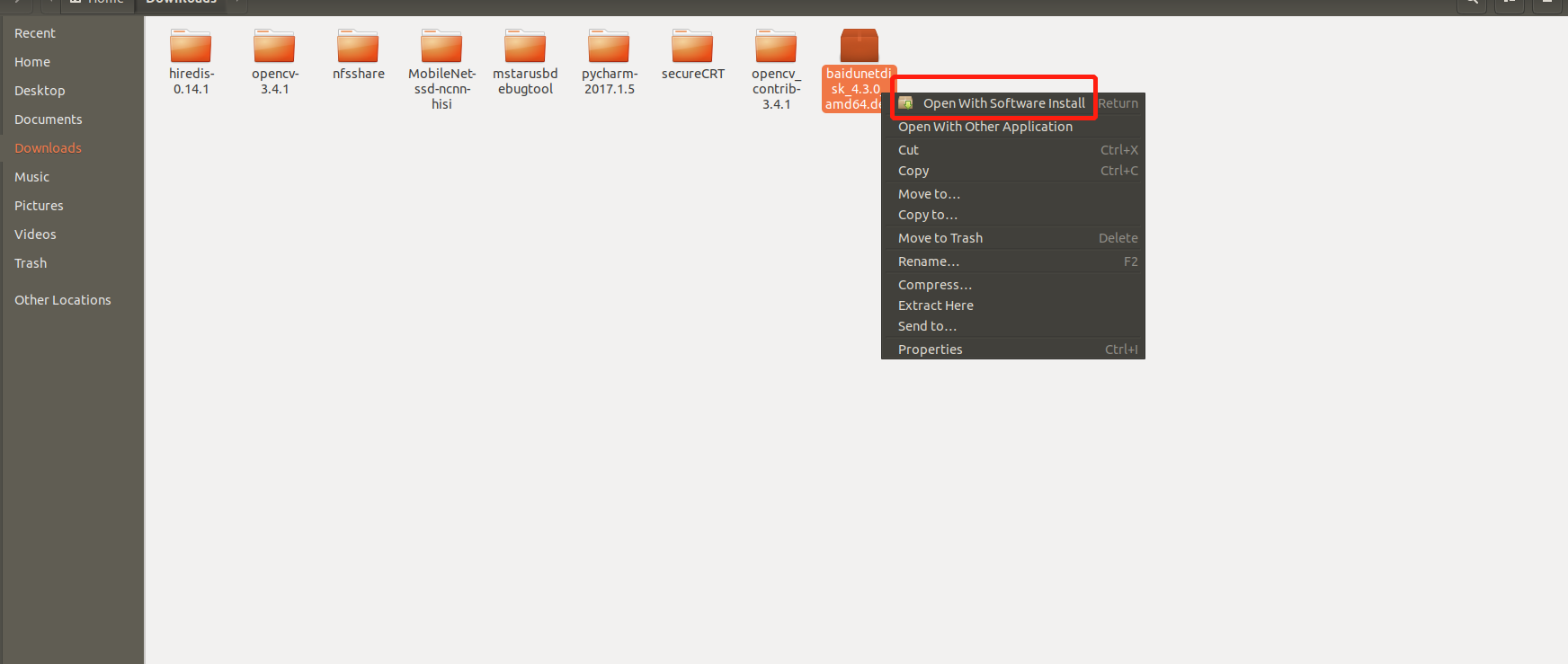 5、 找到刚刚下载的deb格式的文件,使用“软件安装”方式打开