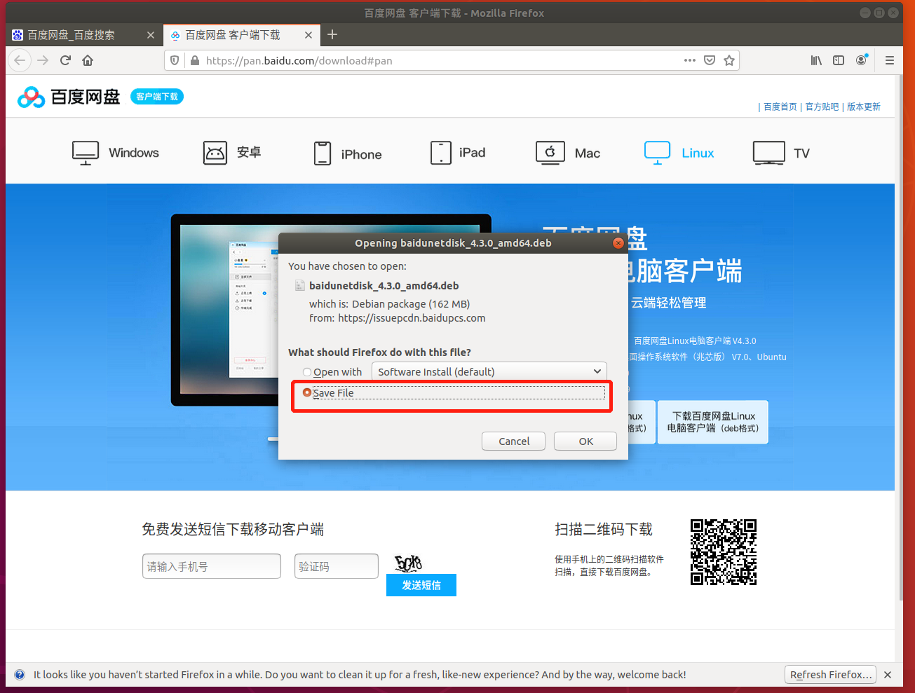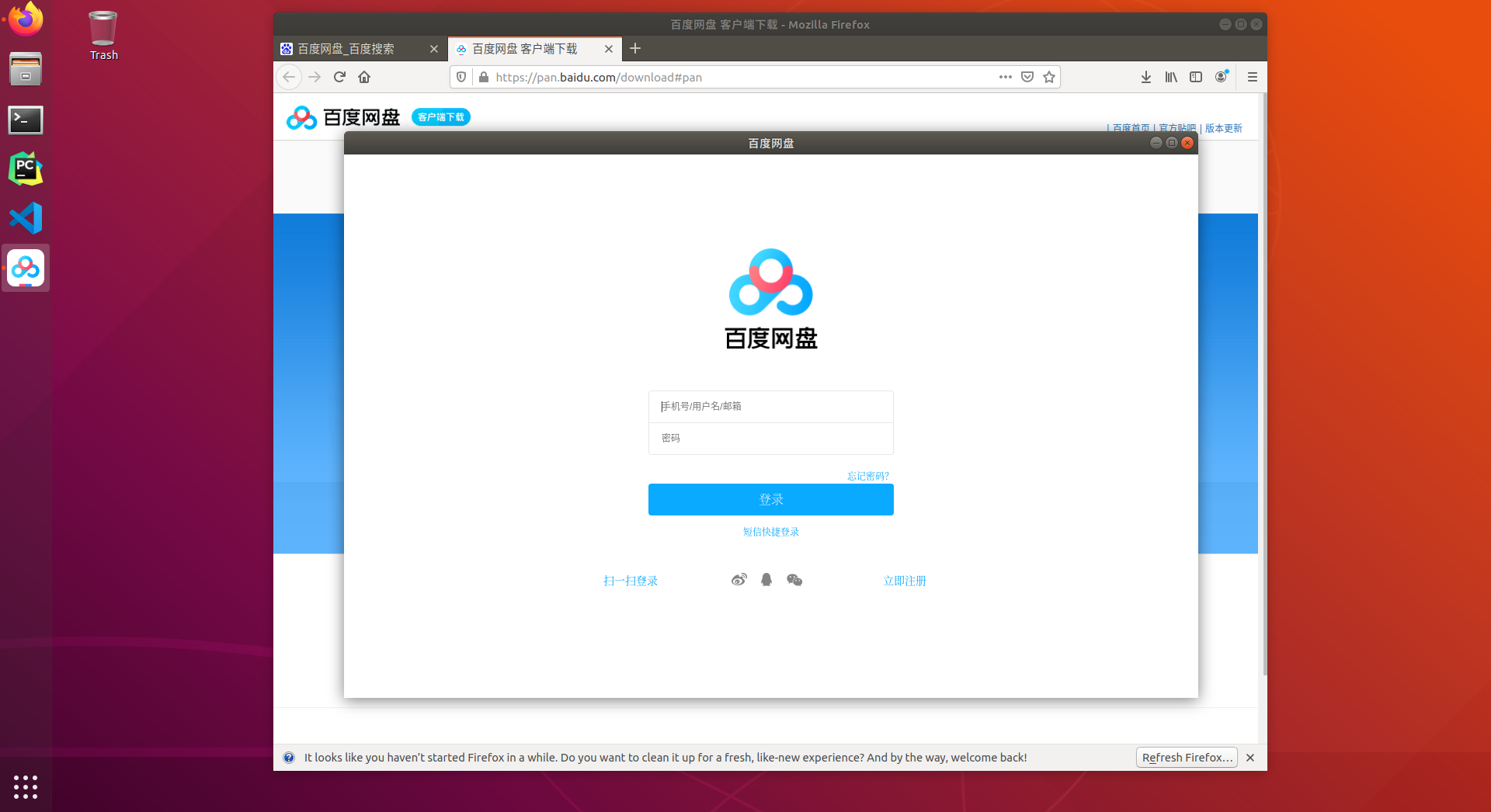 本文主要介绍Linux操作系统下的百度网盘安装(以Ubuntu18.04为例),因为是虚拟机中新建立的Linux操作系统,安装结束后,启动百度网盘未出现闪退的问题;但是,在另一台实体Linux操作系统电脑上安装百度网盘时,反复安装均未成功,在启动时出现百度网盘闪退的问题,按照其他csdn博主方法,也未能解决这个问题。