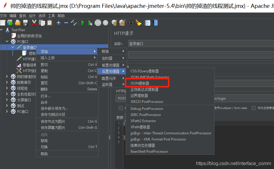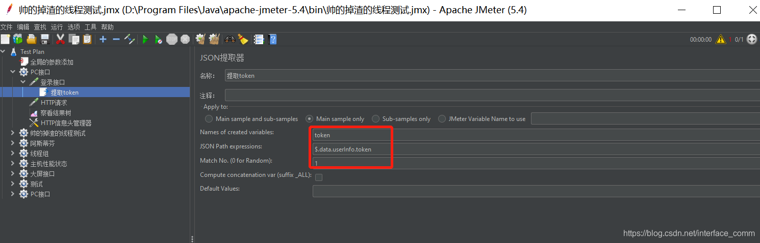 1、现在获取token的接口下面添加一个JSON提取器,如图中所示