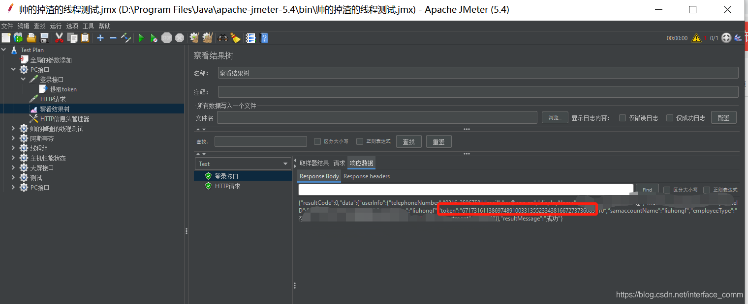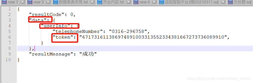 2、查看获取token的接口的返回报文,看到里面有token这节点
