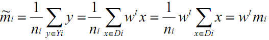 类别i投影后的均值(实际上等于mi的投影):