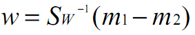 假设数据是n维特征,m个数据,分类个数为2。那么Sw实际上是每个类别的协方差矩阵之和,每个类别的协方差矩阵都是n*n的,因此Sw是n*n的,m1-m2是n*1的。计算得到的w是n*1的,即w将维特征映射为1维。