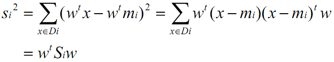 投影后的方差(这里的y是类别i中数据投影后的数据,即y=w_t * x):