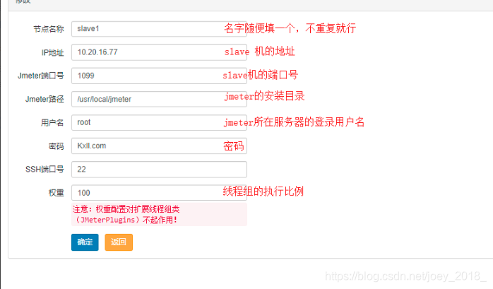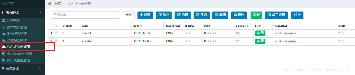 3.在压测平台中配置分布式节点,与master机jmter.properties中的配置一致