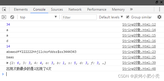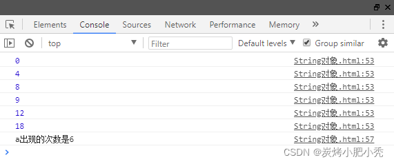 字符串对象常用的方法 charAt(位置) 返回String对象指定位置处的字符 indexOf( 查找的字串,[index]) index是开始的位置 返回的是-1 是没有这个值 更多方法请查阅MDN Web Docs