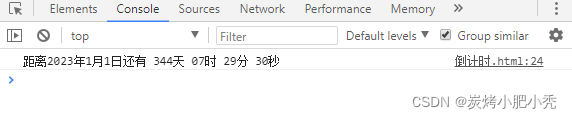 return '距离2023年1月1日还有 '+d+'天 '+h+'时 '+m+'分 '+s+'秒';