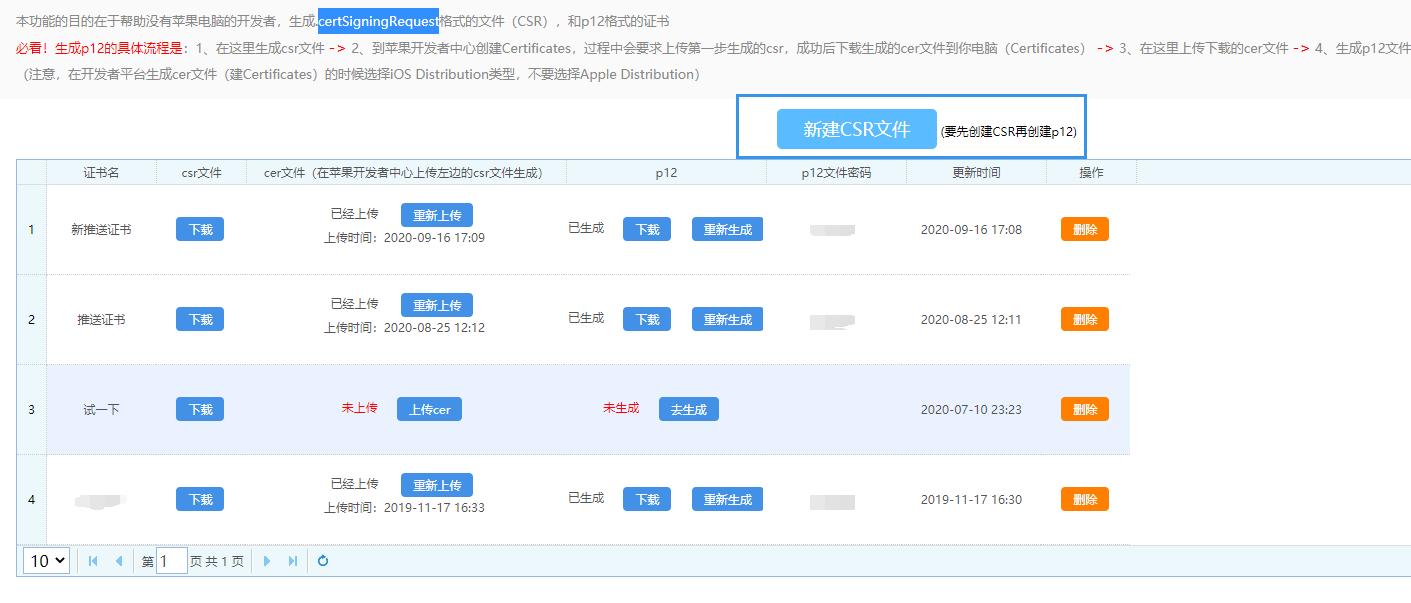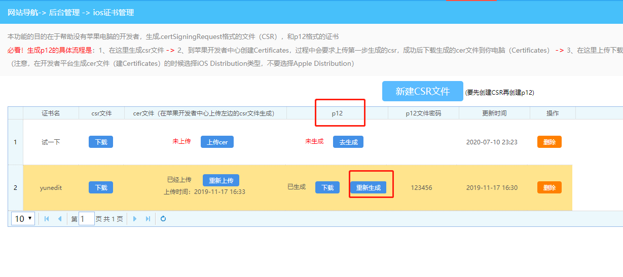 6、回到香蕉云编的后台,上传这个cer文件,就可以生成p12证书了。