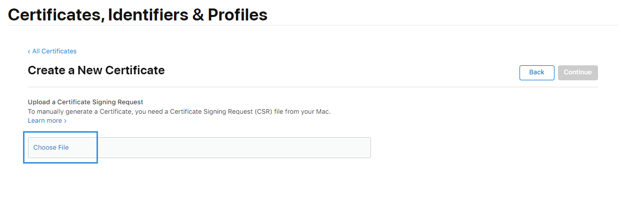4、创建过程中还会要求我们选择一个csr文件,请上传刚才我们在香蕉云编创建的csr文件。