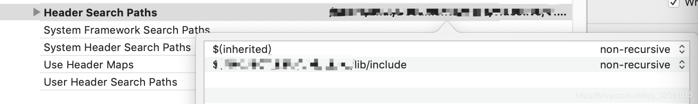 首先我把ffmpeg的所有.a文件还有头文件都导入了工程内,这时候编译是能通过的,但是在C的类里面引用头的时候,编译不过并且当时就报了错,这时候的错误一般都是编译器没有读取到头文件的路径,解决方法就是重新设置下Head Search Path,在Target 的BuildSettings里面搜索下Head Search Paths,将头文件的路径目录写入,这个时候一定要注意路径目录是否正确
