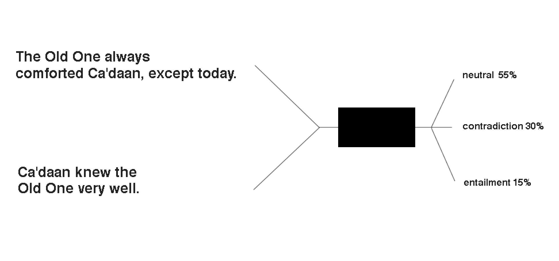 就像上面提到的,这个问题简单来说就是输入两个句子,输出一个label,这里一共有三个label(neutral、contradiction、entailment),那么我们就可以简单地用下图表示这个模型: