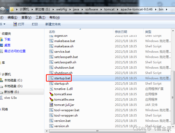 重启tomcat服务器,双击startup.bat,刷新网页则访问成功