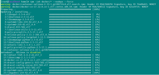rpm -ivh docker/* --nodeps --force