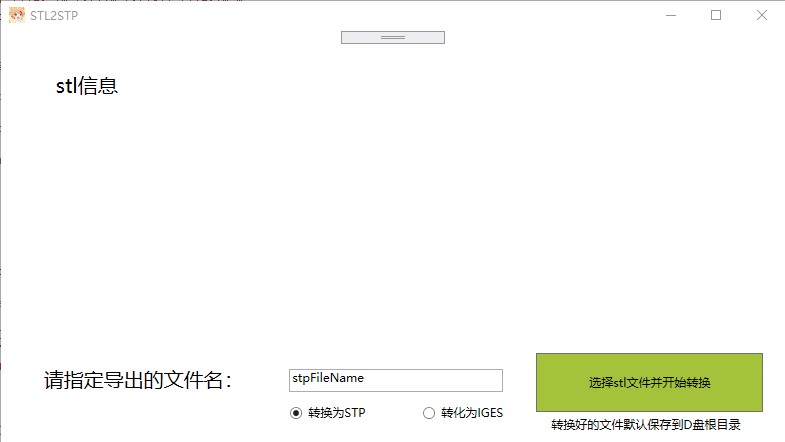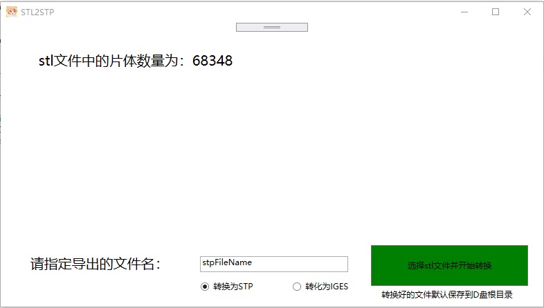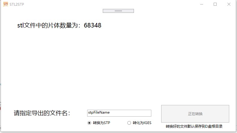 使用也是非常简单,不需要管理员模式,直接点开应用就能使用,可以选择导出格式是stp或者igs。因为如果要导出到c盘需要进入核心态,也就是要管理员权限,所以这里为了避开管理员权限,导出是默认到d盘根目录的。