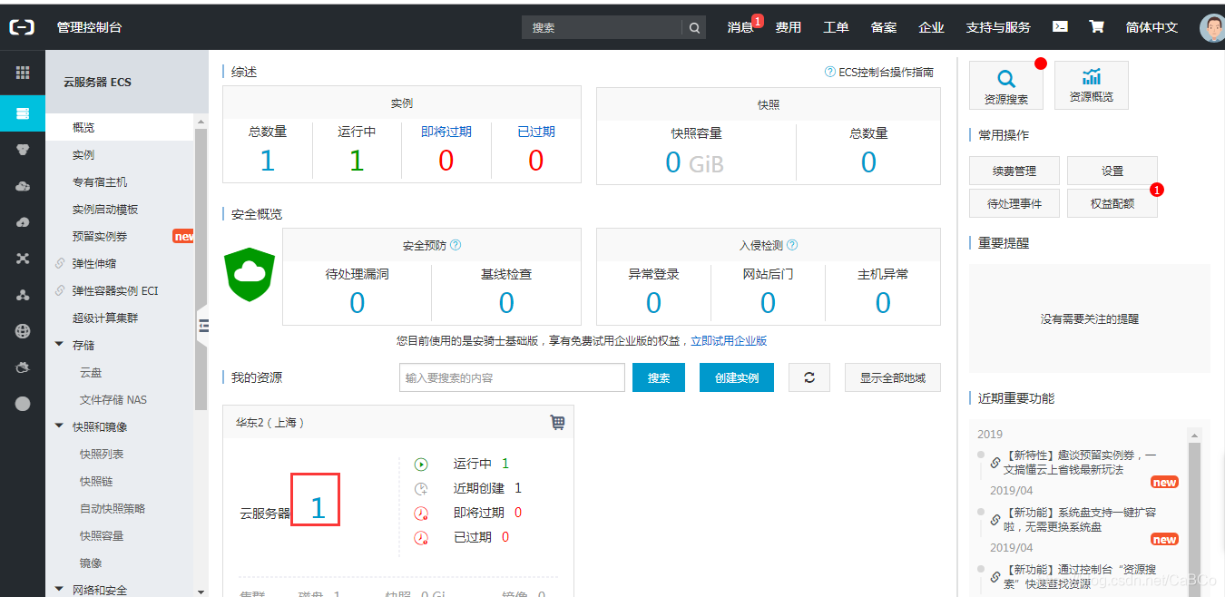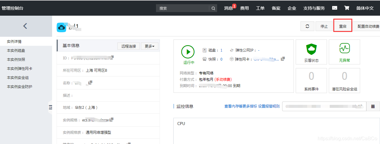 登陆后,修改阿里云服务器实例密码,操作如下:
