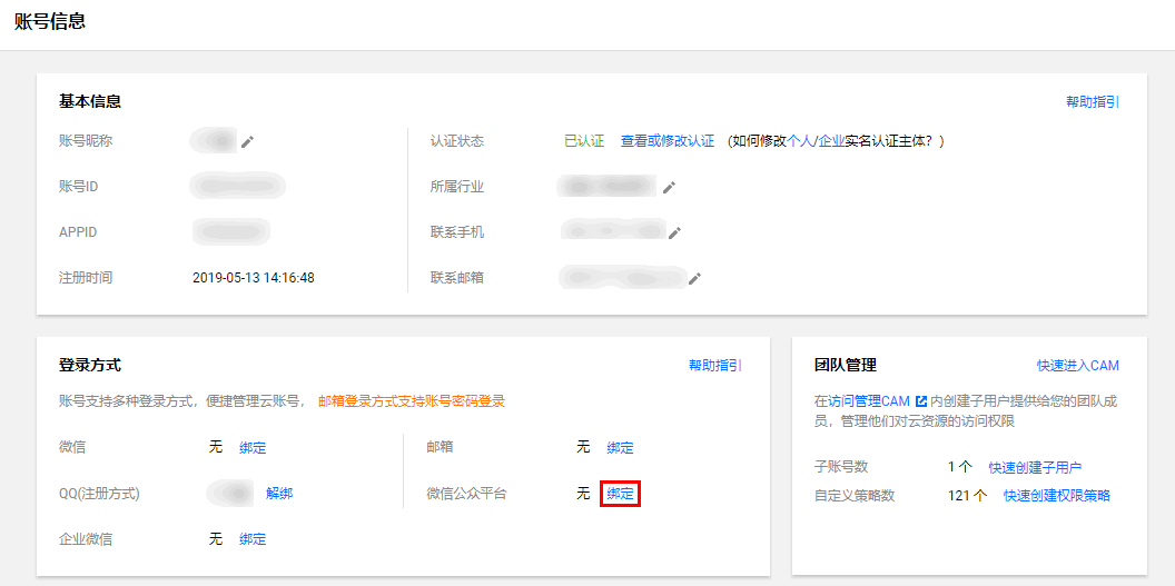 A:不支持,腾讯云账号只能绑定小程序或服务号中的其中一个。