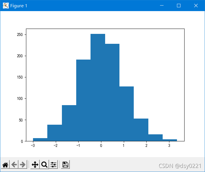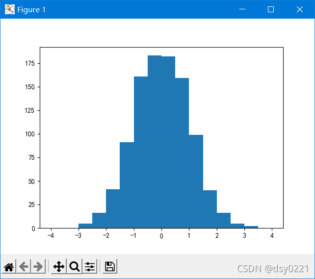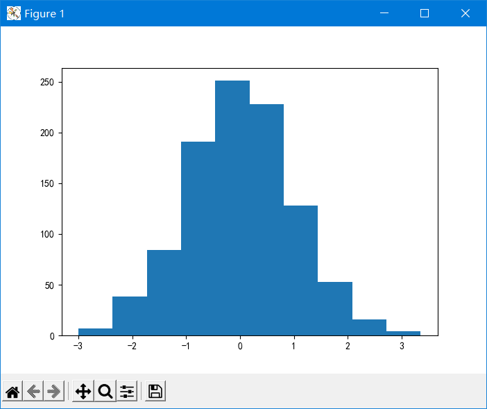 例如,随机生成一个含有1000个元素的服从标准正态分布的数组,绘制直方图,代码如下: