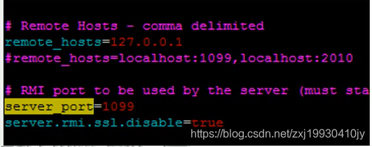 添加一行:server.rmi.ssl.disable=true。保证远程连接通畅